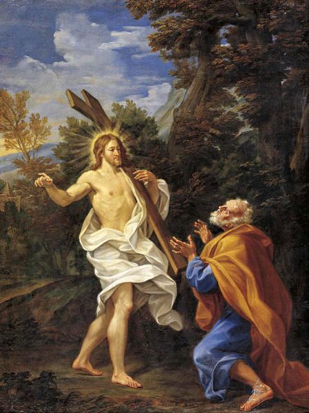 During the forty days in the desert, Jesus rebuked the Devil, “Get away, Satan!” And at the Last Judgment, Christ the King upon his throne will tell the unrighteous goats on his left, “Depart from me, you accursed, into the eternal fire prepared for the devil and his angels.” But notice Jesus does not say to Peter “get away” or “depart from me.” Jesus tells him, “get behind me.” Peter is not yet thinking as God does but the Lord Jesus does not desire to cast Peter off forever, if that fate can be avoided. If Peter would humbly follow Jesus, the Lord would show him the Way. Jesus saying “get behind me” was not a personal rejection of Peter, but asking him to follow his Good Shepherd from a new perspective to the Promised Land of heaven.